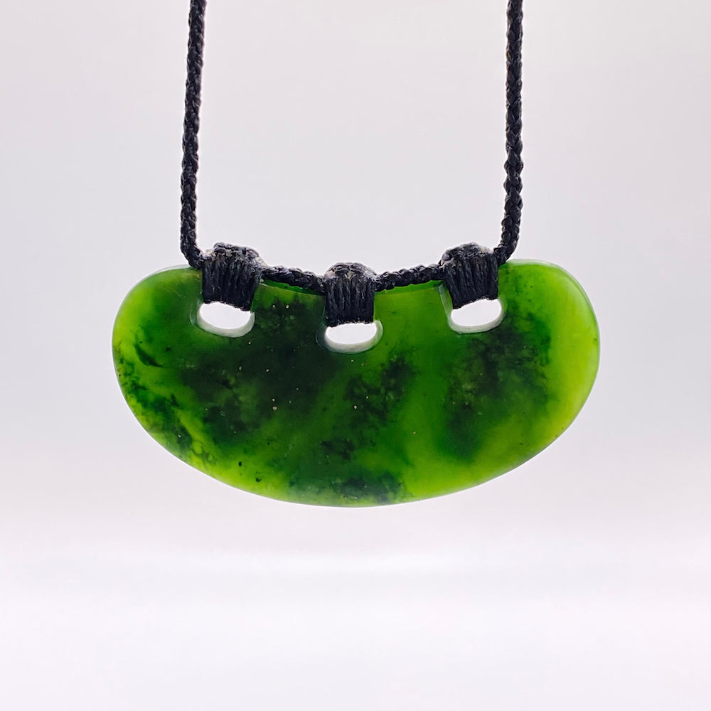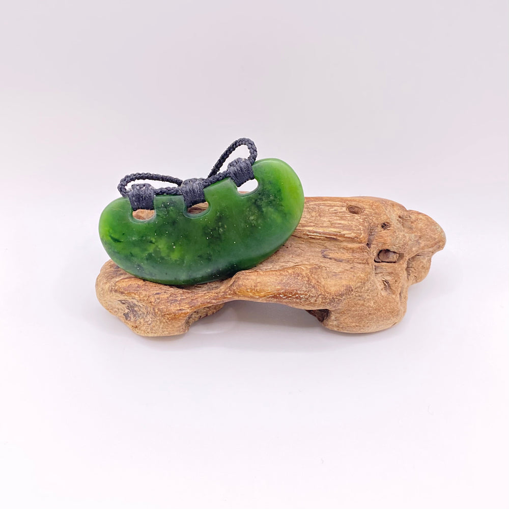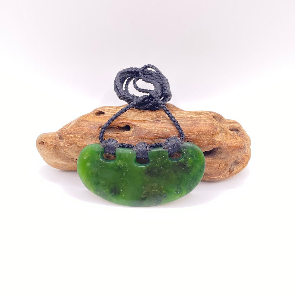 This pendant is carved from pounamu we have collected from the Marsden Valley in the Paroa area just outside of Greymouth on the West Coast of the South Island in New Zealand.