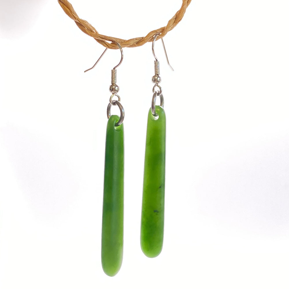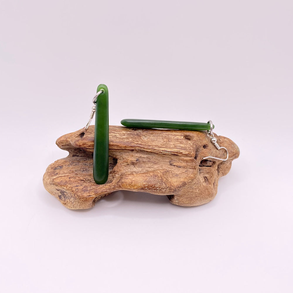 The earrings are carved from pounamu we have collected from the Marsden Valley in the Paroa Area just outside of Greymouth on the West Coast of the South Island in New Zealand.