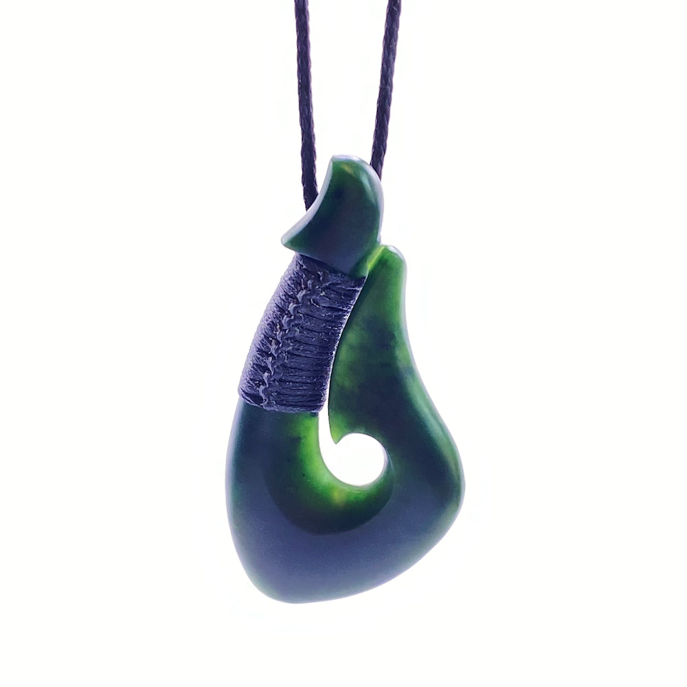 The back of the Hei Matau/hook is scalloped/shaped so that it is comforting to rub with the thumb while it is being worn.