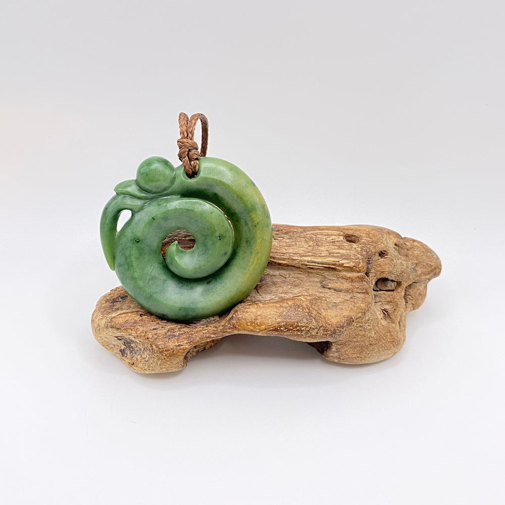 It is carved from Kokopu pounamu we have collected from Arahura River which runs between Greymouth and Hokitika, on the West Coast of the South Island in New Zealand.