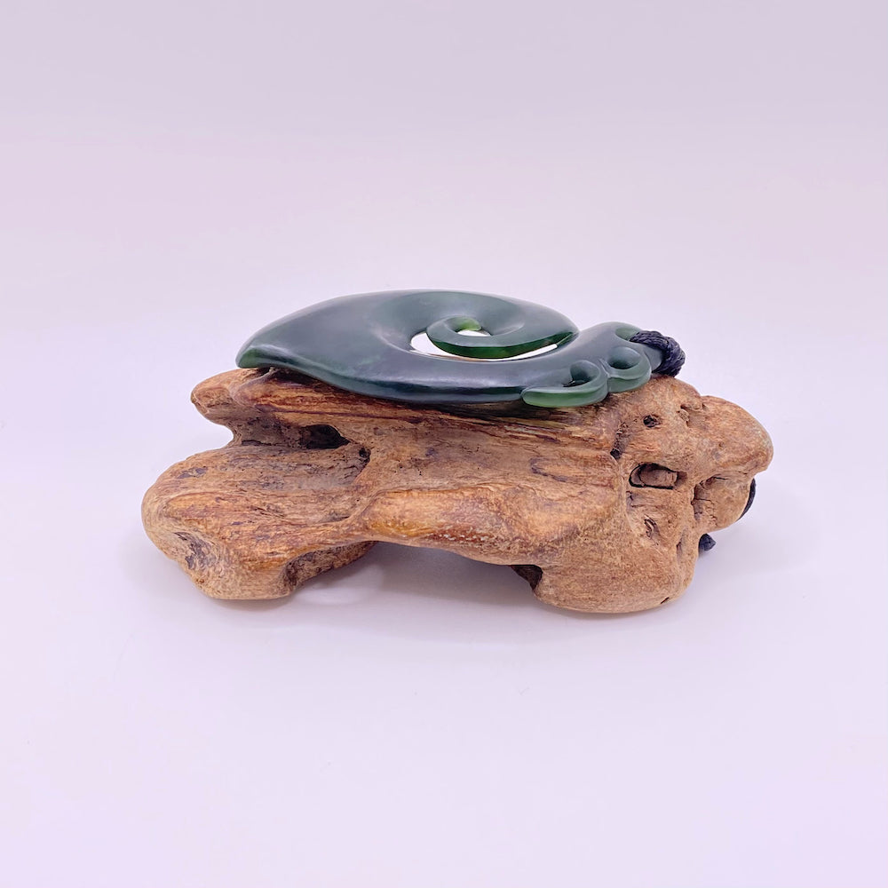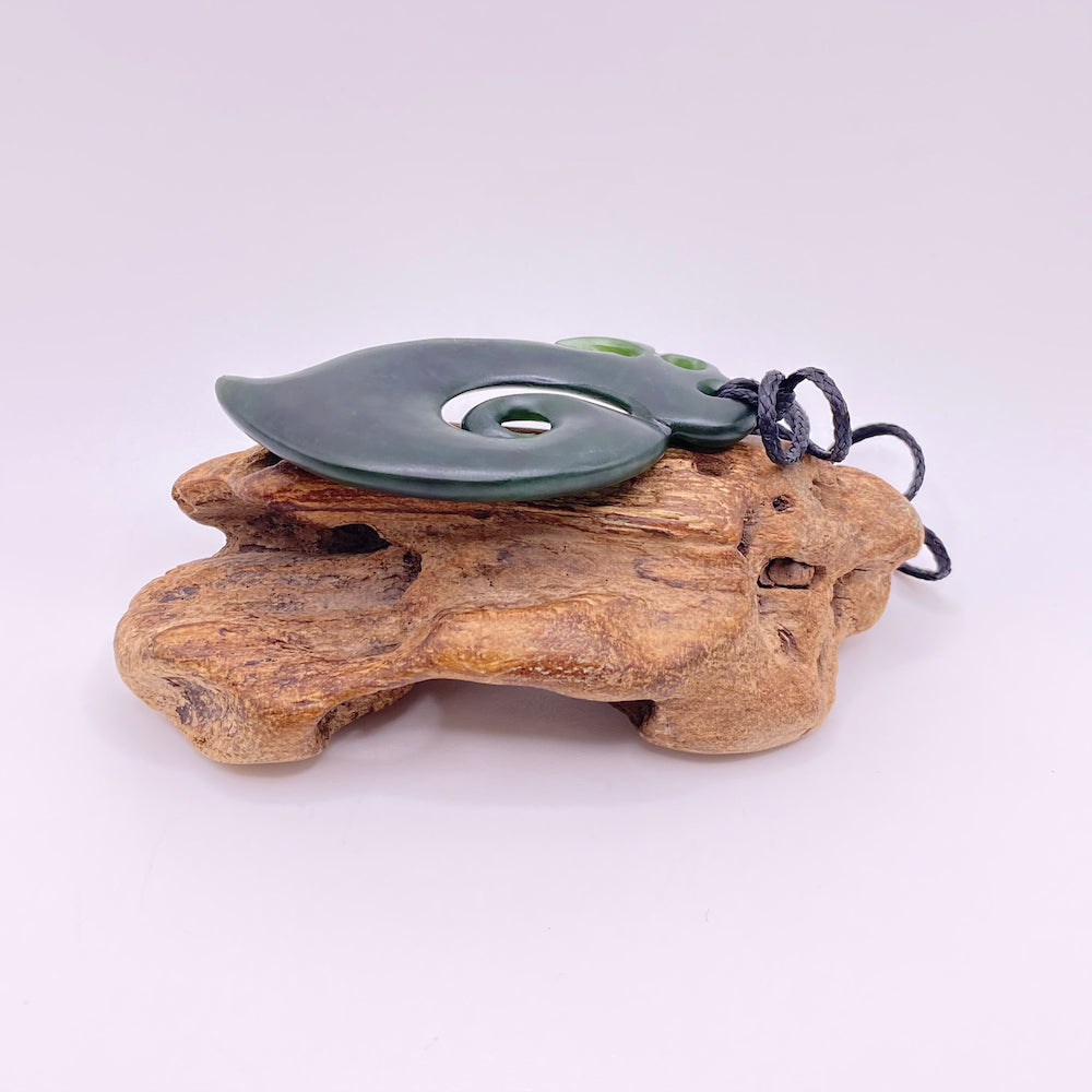 It is carved from pounamu we have collected from the Rimu Area just South of Hokitika on the West Coast of the South Island in New Zealand.