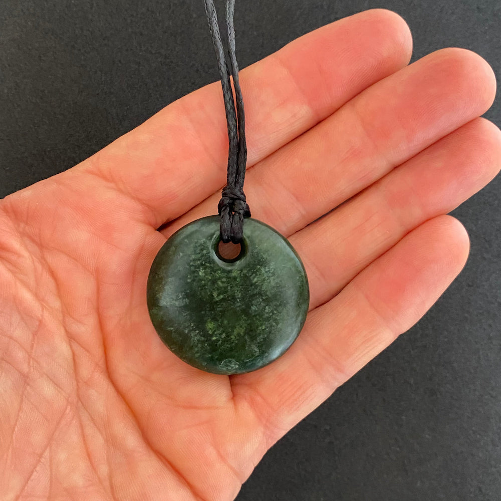 The Porohita is 35mm in diameter. It is carved from pounamu we have collected from the Marsden Valley in the Paroa Area, just outside of Greymouth, on the West Coast of the South Island in New Zealand.