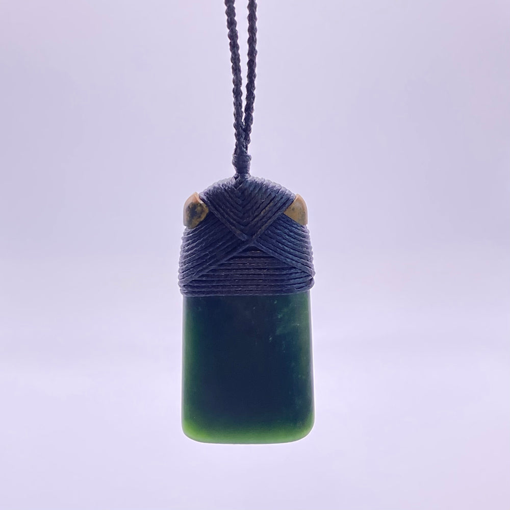 The Toki has a waxed nylon cord so the pendant can be worn ALL the time - even in any kind of water. It is four strands that have been hand platted into a special, round, 4-plait. The cord is adjustable by pinching the special knots between your thumb and finger and pulling.