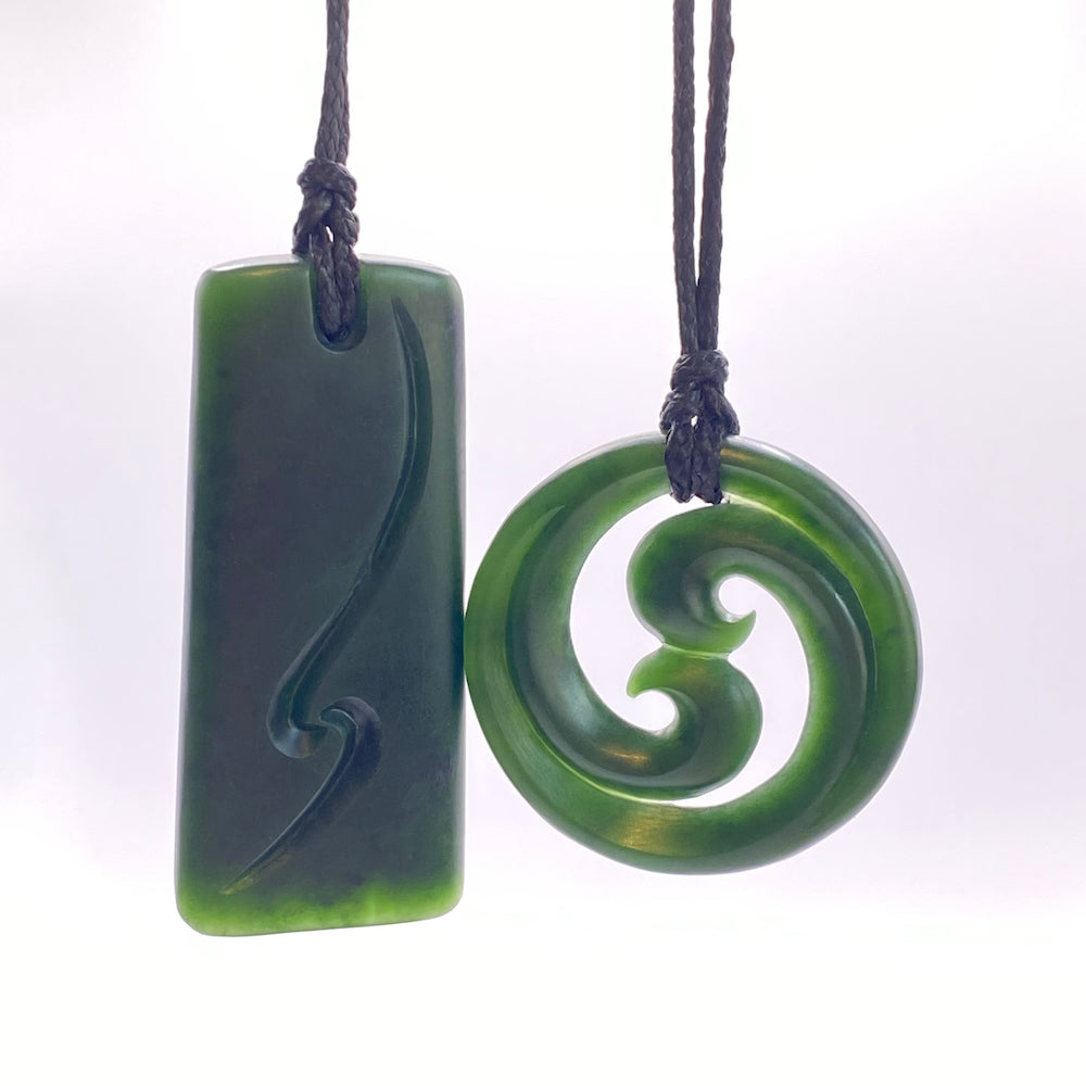 Pendant Meaning: In the Double Koru one Koru represents the person wearing the Toki and the other Koru represents the person wearing the Koru. Like the two Koru it shows their lives coming together in love, friendship and harmony for life. The Porohita/disc shape around the outside means that in life the opportunities are endless and with the love and support of the other person the wearer can do and achieve anything.