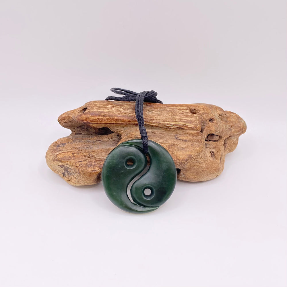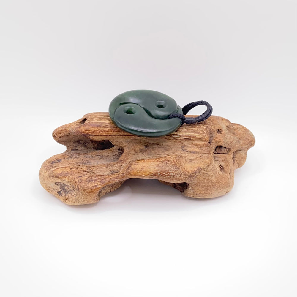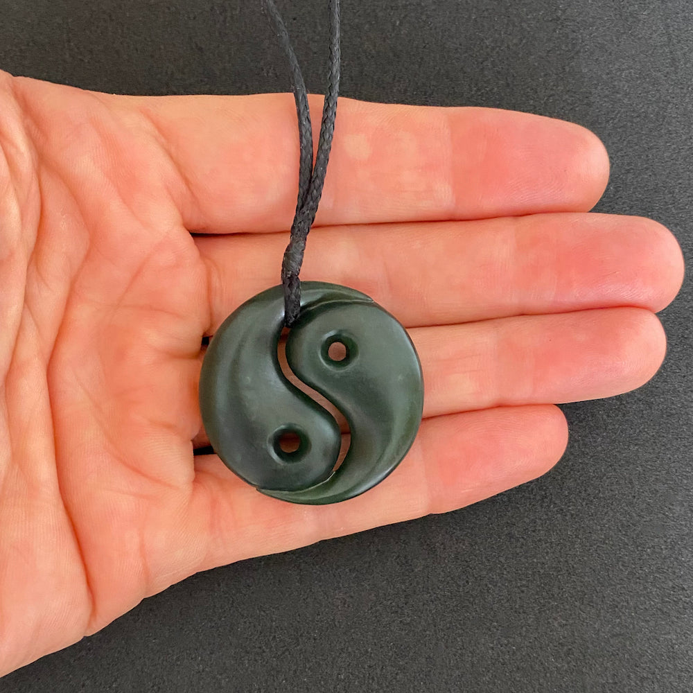This Yin Yang is carved from pounamu we have collected from the Rimu Area just South of Hokitika on the West Coast of the South Island.
