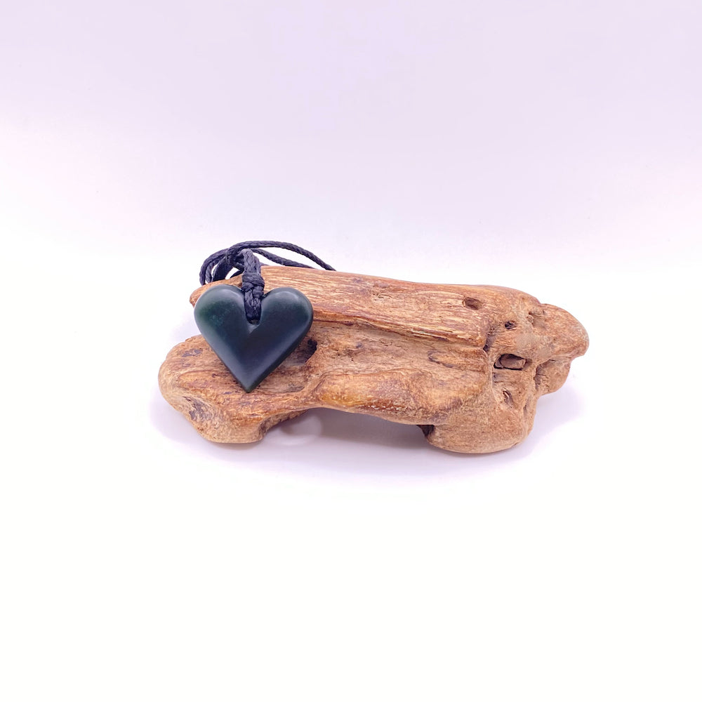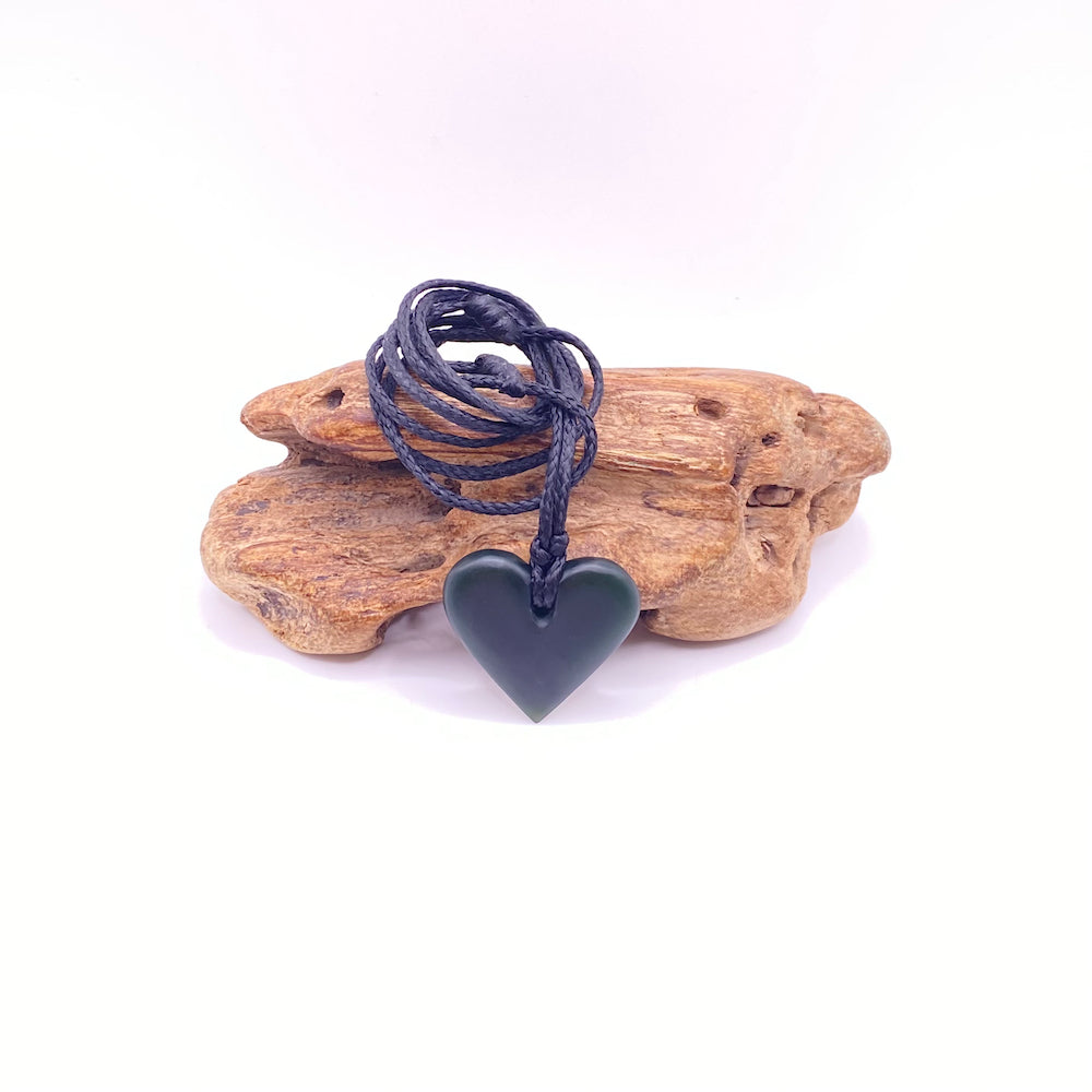 The pendant is 25mm in length and 27mm at its widest. It is carved from pounamu (jade) we have collected from the Rimu Area just South of Hokitika on the West Coast of the South Island.