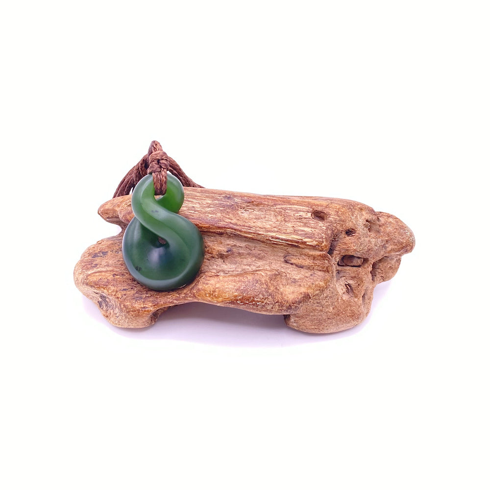 The Pikorua is 35mm in length and 24mm at its widest. It is carved from pounamu we have collected from the South Westland Area just, on the West Coast of the South Island.
